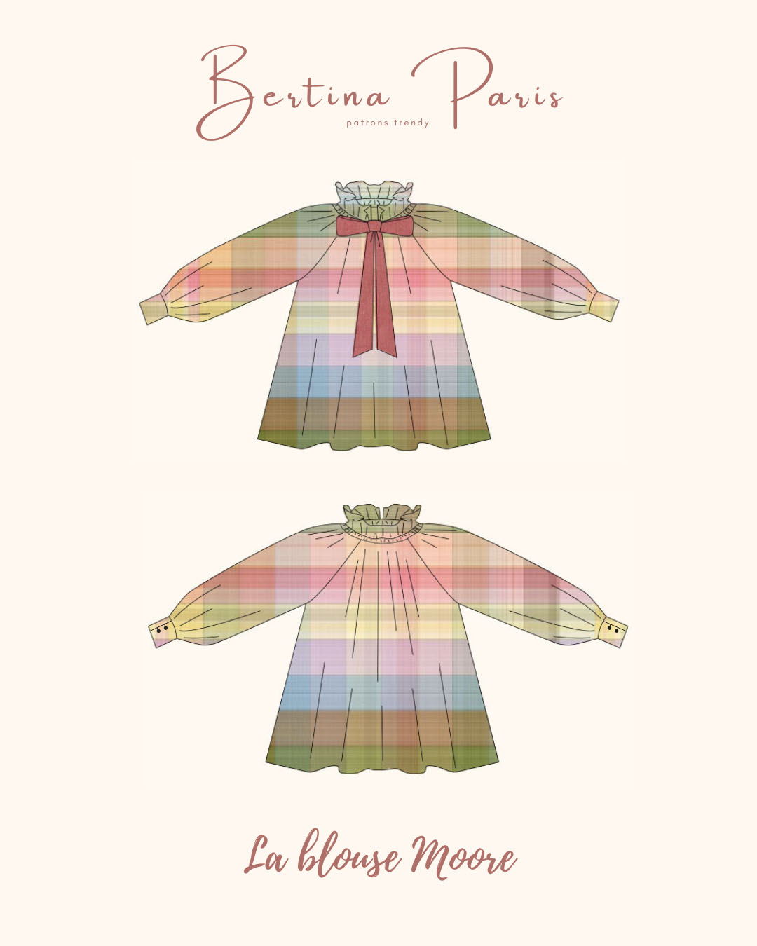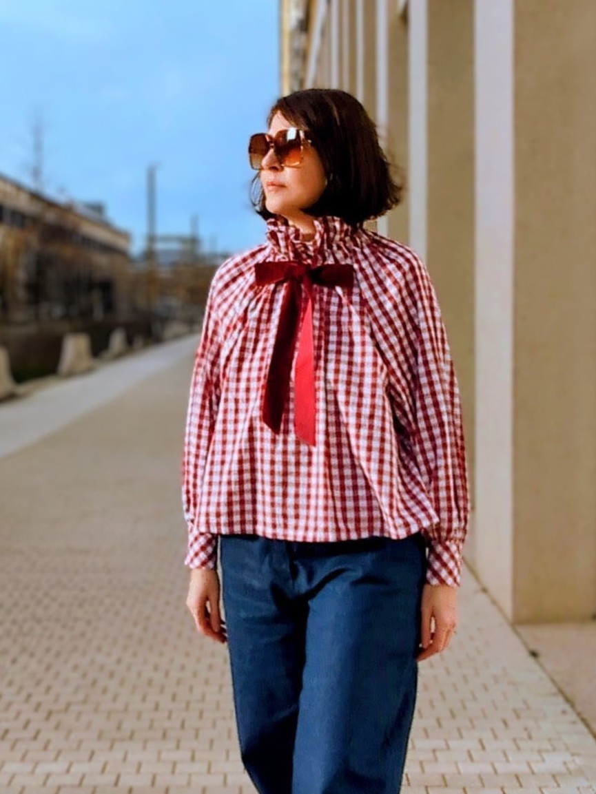 Vous pouvez découvrir plus amplement et acheter le patron de la belle Karine directement sur sa boutique via ce lien : BLOUSE COL MONTANT COULISSÉ MOORE